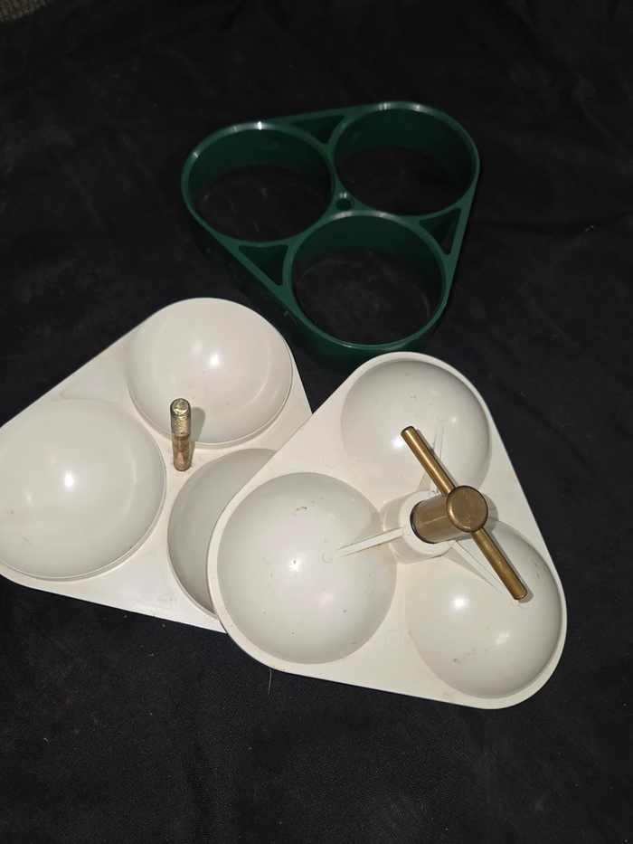 2. Хм? А это что за фигня? Отсек для трех яиц? Рюмка на троих? Юла?