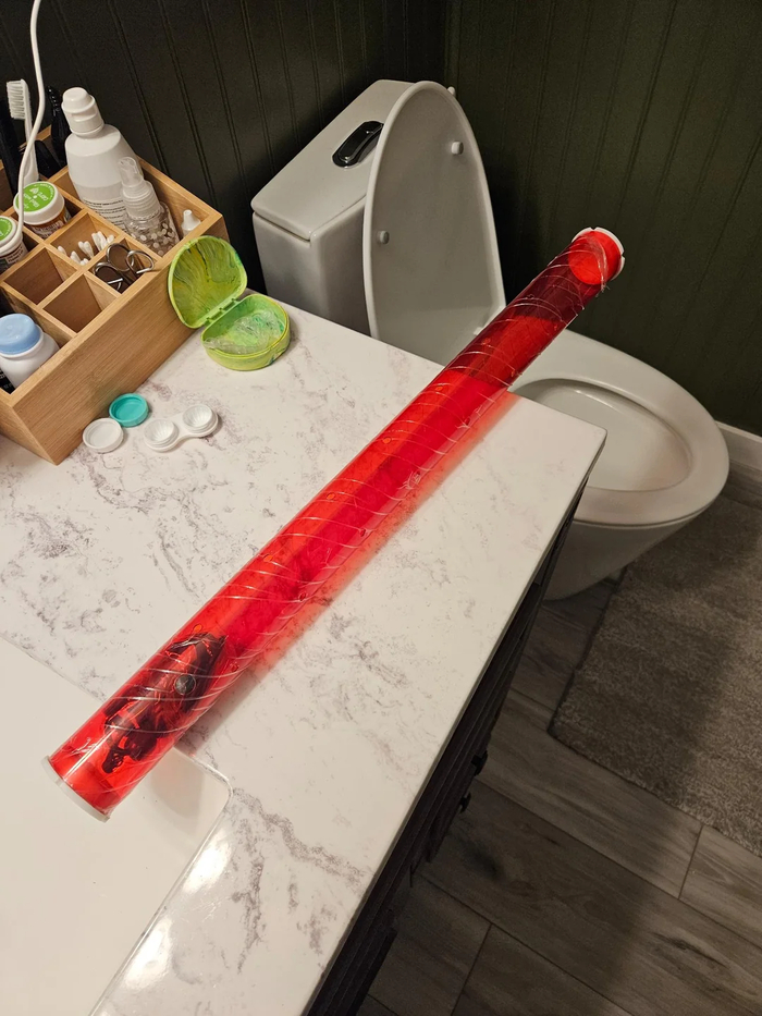7. Что это за длинная полая красная трубка? Внутри бусы какие-то на веревочке.