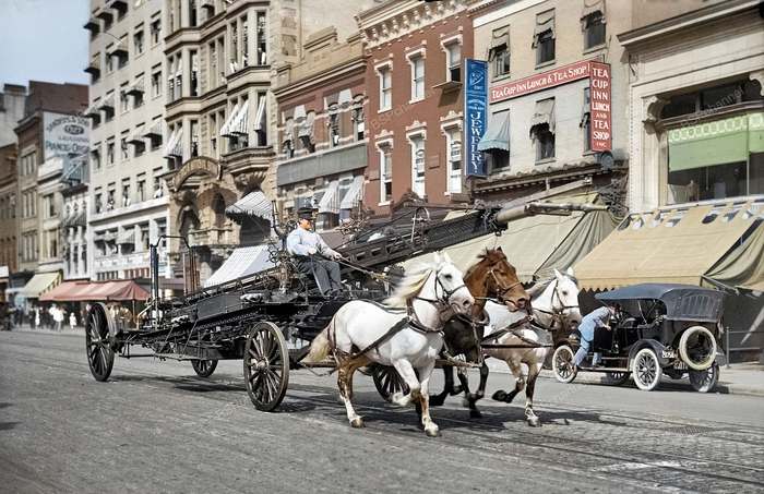 Пожарная команда на одной из улиц Вашингтона, 1914 год.