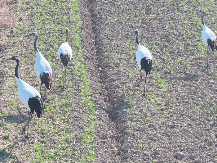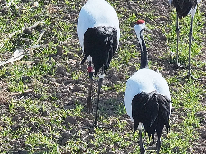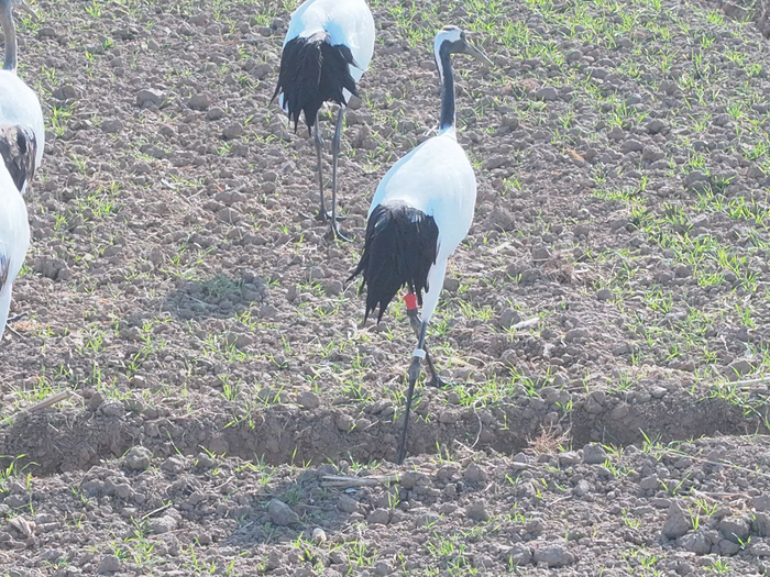 Это традиционное место зимовки японских журавлей. Птицу узнали по цветным пластиковым кольцам на лапах.