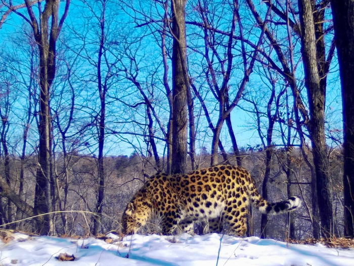 С невестой в кадр молодой самец ещё не попадался, но какие его годы, ещё успеет, а может, тщательно скрывает свою личную жизнь от фотоловушек национального парка «Земля леопарда».