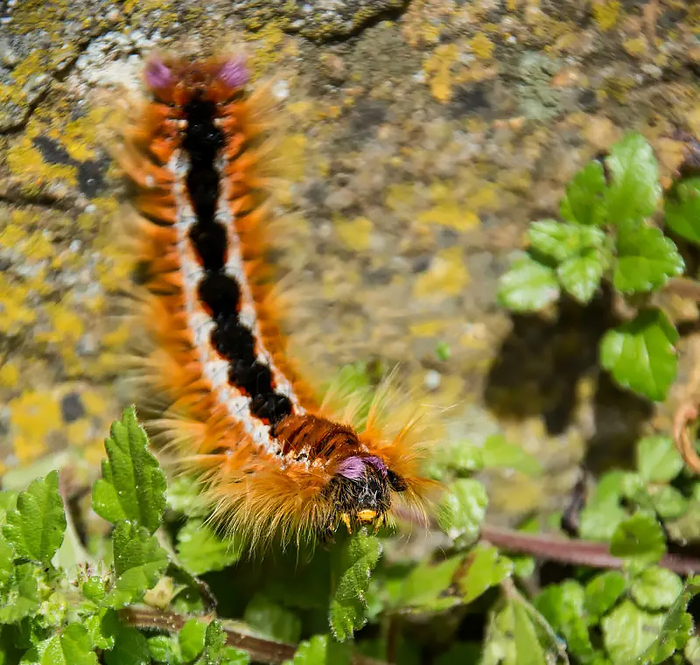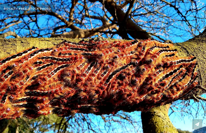 Перед вами гусеницы капской лапчатки (Eutricha capensis) – бабочки, обитающей в Южной Африке, где она распространена очень широко. Встретить этих балдёжных лохматых рыжих гусениц можно как в тропическом лесу, так и в саду у загородного дома, ведь особой привязки к видам растений они не проявляют, лопая практически всё, что не ядовито.