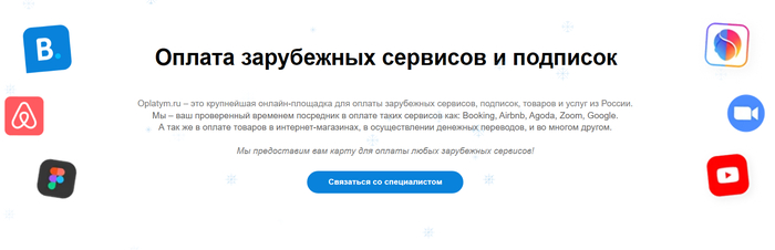 Вы переходите на сайт Oplatym и выбираете раздел оплаты зарубежных сервисов и подписок.