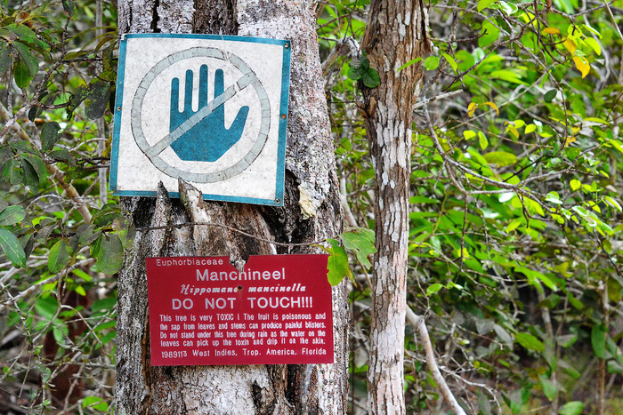 На вид вполне себе приятное дерево, с красивыми цветами, сладкими плодами (манцинелла означает "маленькое яблоко") и густой раскидистой кроной – мечта любого путешественника. Тогда почему же во многих странах в местах, где могут появиться туристы, возле деревьев устанавливают предупреждающие таблички?