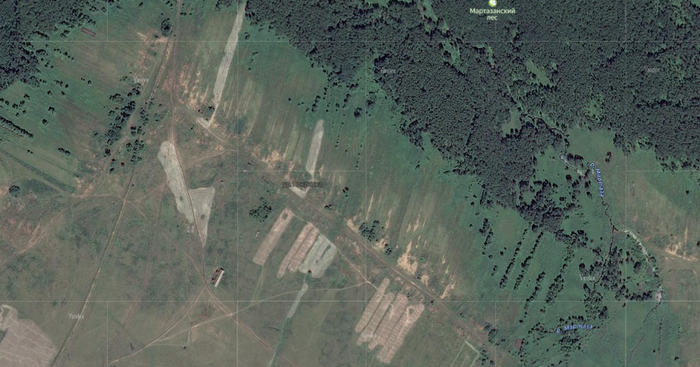 К югу от Верхненовокутлумбетьево растут березовые леса, на опушке - остатки деревни Покровка: