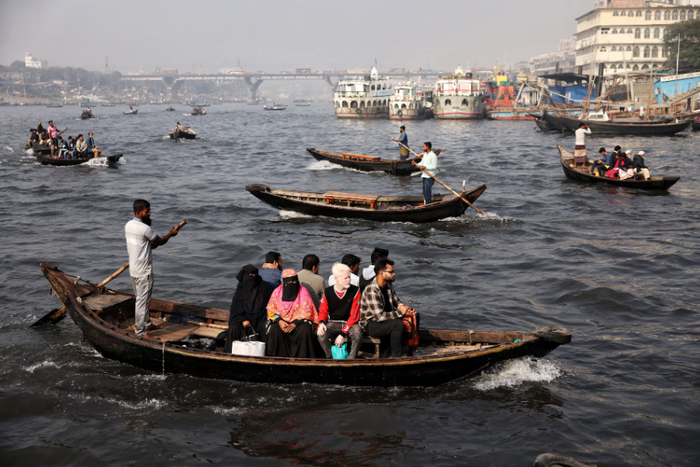 В Бангладеш люди поплыли по делам.