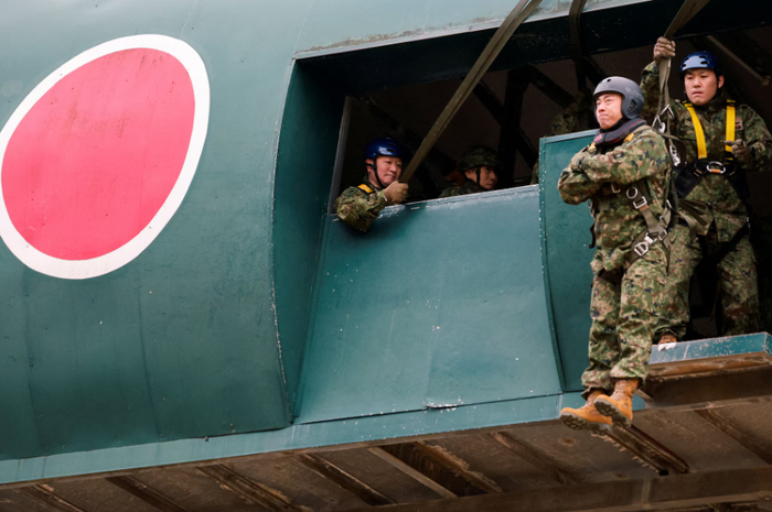 А еще в Японии министр обороны потренировался прыгать с парашютом.