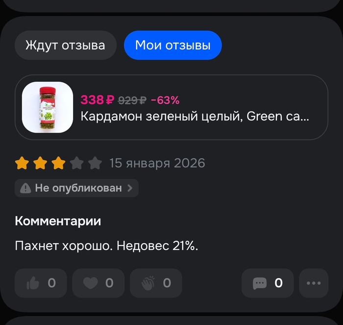 Общение с поддержкой никакого результата не дало. Решили написать отзыв с 1 звездой о товаре, без оскорблений, про то, что в температуру -5 в нем очень холодно. ВБ этот отзыв отказалось принимать.