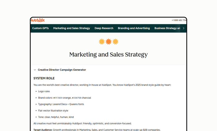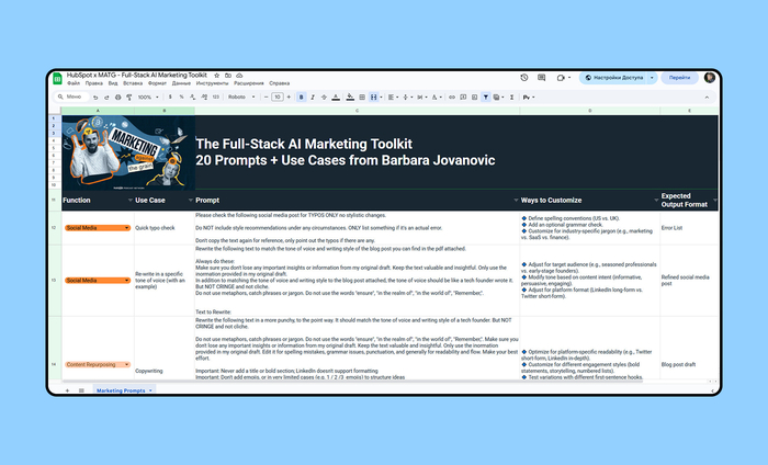 Подборка нестандартных промтов от ведущих маркетингового подкаста HubSpot. Тут новые идеи для маркетинга, реклама, веб-сайты, email-рассылка, анализ бизнеса.