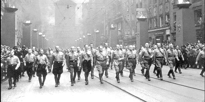 Объявленная вне закона во многих округах Германии, Национал-социалистическая партия, тем не менее, неуклонно увеличивала число своих членов. Проверенные временем методы Таммани-Холла по оказанию множества мелких услуг сочетались с шумным терроризмом и кричащей патриотической пропагандой. Усердно культивировался образ мистического, воздержанного, харизматичного фюрера.