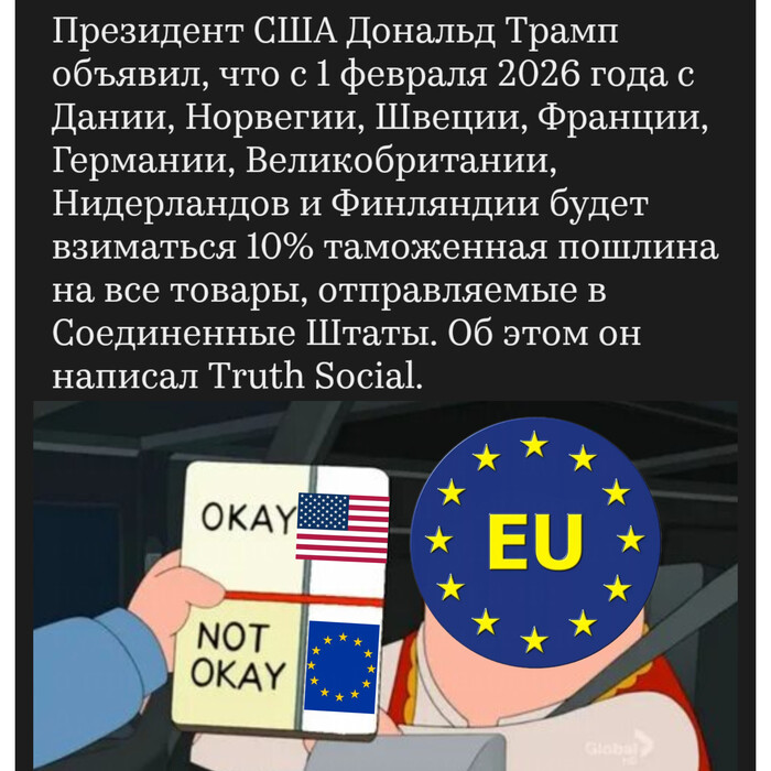 Ответ на пост «Трамп объявил о пошлинах в отношении 8 стран Европы, пока Дания не продаст Гренландию»4