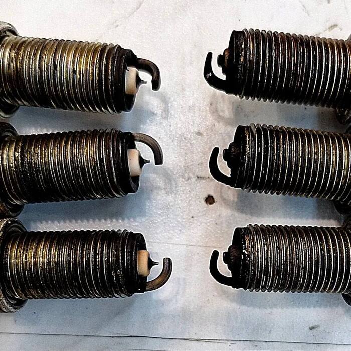 Выкрутив свечи на банке 2, ожидаемо вижу чёрный нагар. Да и свечи какие-то уставшие... Отключаю обе лямбды, коррекции выравниваются, мотору легчает, но все равно пропуски, не удовлетворительно.