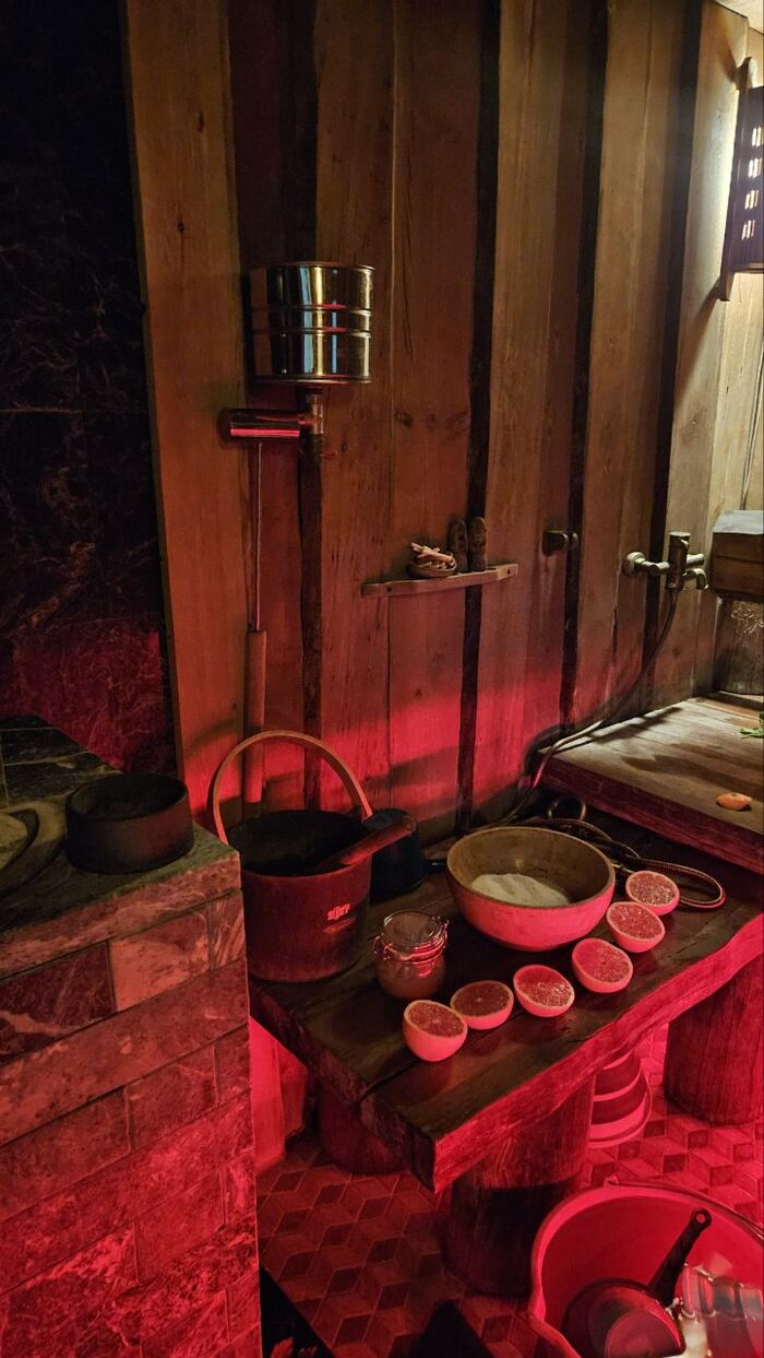 Еще важным атрибутом мягкой бани является атмосфера! Умение создать нужный настрой: поющие тибетские чаши, шаманский бубен, вкусные ароматы и задушевные беседы.