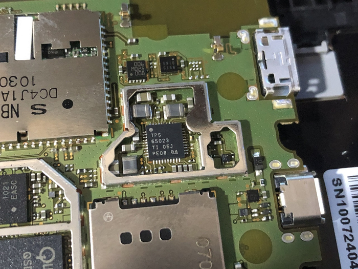 С верхней части скрывается дополнительный контроллер питания TPS65023 разработки компании Texas Instruments. Этот КП отвечает исключительно за формирование дополнительных шин питания на плате, но каких конкретно — я с наскоку так и не понял.