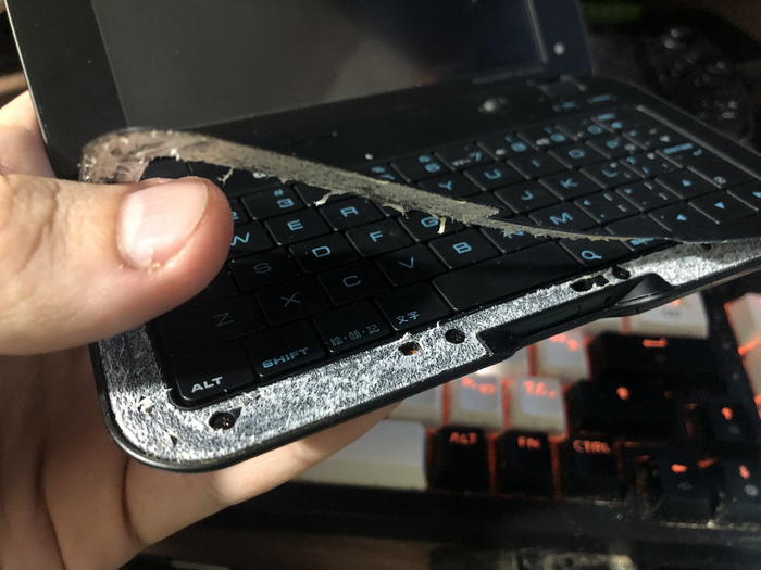 Сам конструктив устройства показался мне несколько знакомым, в QWERTY-смартфонах Sony Ericsson используется такая же проклейка для некоторых частей клавиатуры, вот только сама клавиатура там не деформируется. После снятия задней части корпуса на крышке смартфона, всё стало предельно ясным...