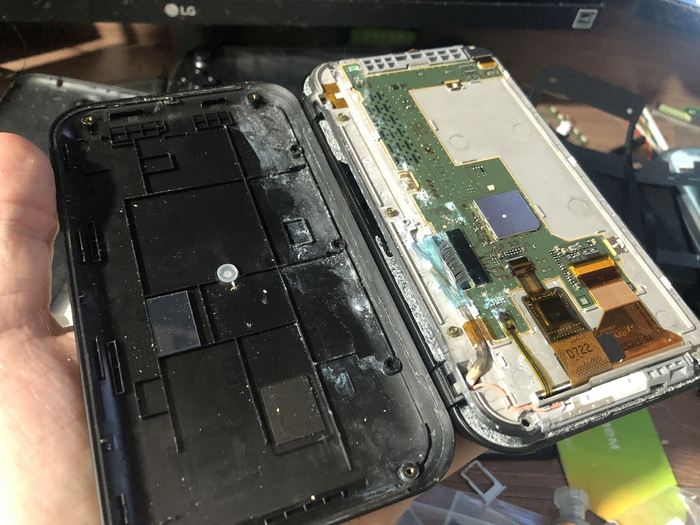 При подключении смартфона к ПК с помощью кабеля, оно определилось в системе как Android-устройство. Пока смартфон был разблокирован, я понажимал качельку громкости и убедился что система точно загрузилась корректно... Ну, учитывая конструктив гаджета, логично будет предположить что проблема в межплатном шлейфе, однако при естественном износе, изображение обычно начинает сыпать артефактами, либо пропадает полностью, заливая дисплей белым цветом, либо же иногда может пропасть подсветка. У меня же дисплейный модуль не работал вообще. При этом никаких внешних следов повреждения или даже использования у устройства не было.