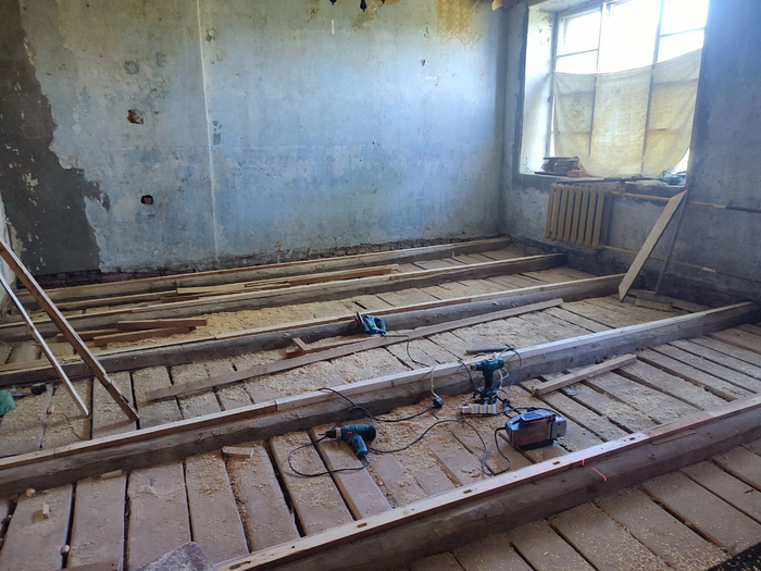 Хочу пока в одной комнате снять доски, подвыровнять пол, звукоизолировать и поместить доски на место.